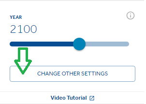 조건 값을 바꾸면 결과가 어떻게 달라질지 궁금하신 분들도 있겠죠. 그러면 PROJECTION TYPE(홍수 유형 설정), POLLUTION PATHWAY OR SEA LEVEL SCENARIO(오염 경로 또는 해수면 상승 시나리오), LUCK(변수)을 조정하시면 됩니다. 복잡하죠? 그러면 위의 그림처럼 슬라이더 버튼들을 오른쪽 끝까지 설정해보세요. 최악의 예상 결과를 확인하실 수 있습니다. 반대로 버튼들을 모두 왼쪽 끝으로 설정하면 가장 긍정적인 예상 결과를 확인할 수 있습니다.