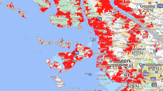위 붉은 지역은 "연안 홍수 피해 예상 지역" 입니다.