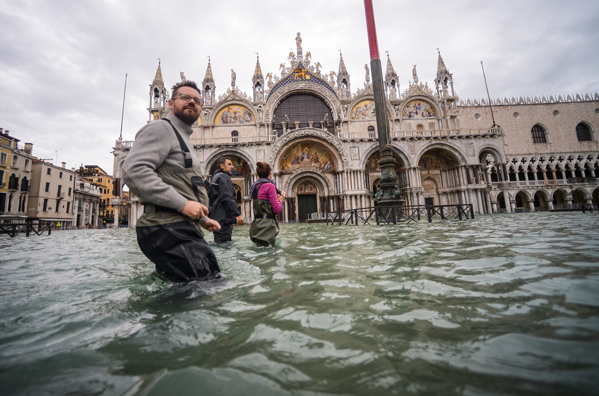 이탈리아 베네치아는 바닷물이 범람해서 역사적인 건물들이 침수되는 피해를 겪고 있습니다. 거리와 광장에서 사람들이 물 속을 걷는 진풍경이 펼쳐지고 있어요. 수영은 하지 마세요. 저기 똥 물이에요.